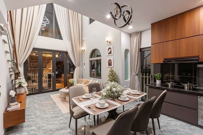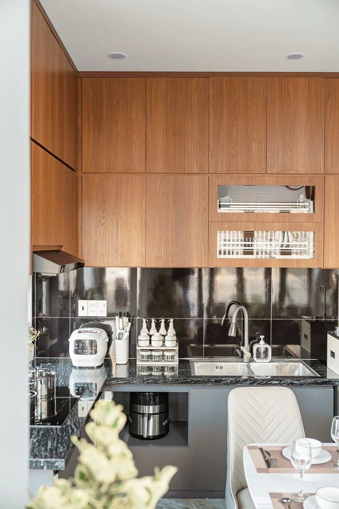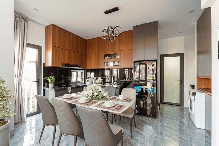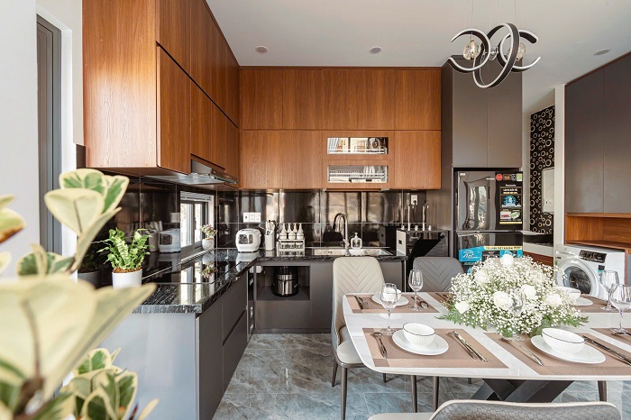 – Bếp đầy đủ dụng cụ nấu nướng cơ bản, bàn ăn