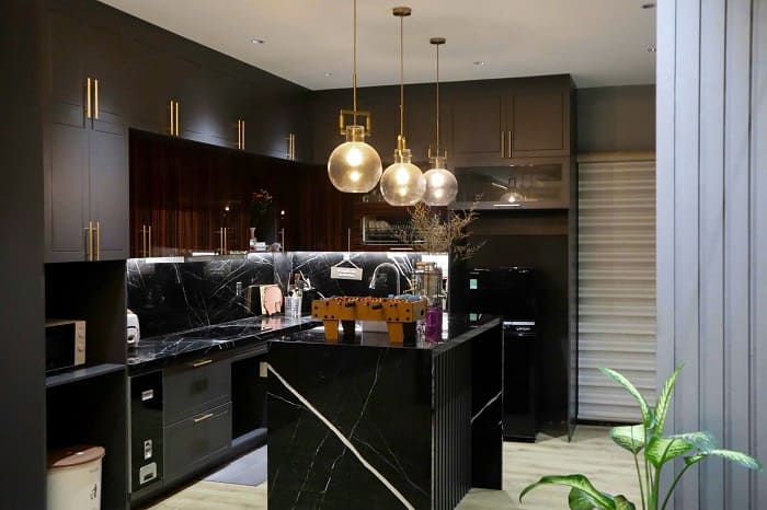 – Bếp có dụng cụ nấu ăn cơ bản, lò vi sóng, nồi cơm điện, ấm đun nước, tủ lạnh, chén, đũa