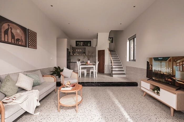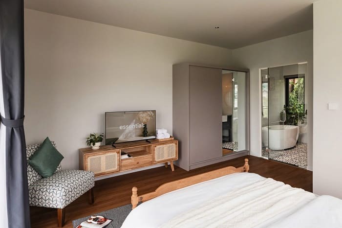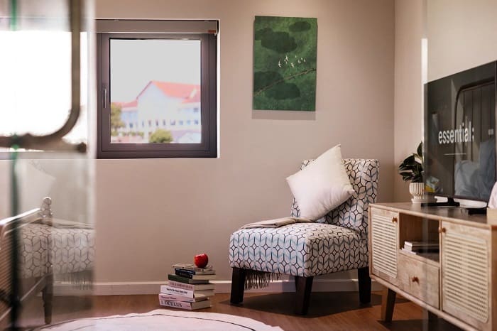 – Phòng khách rộng có sofa + TV xem Netflix