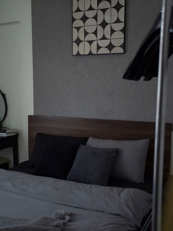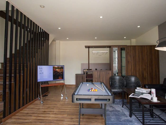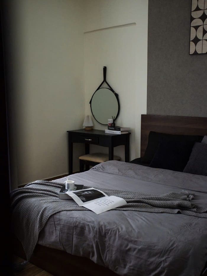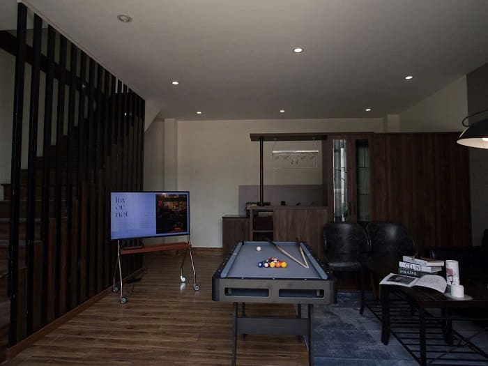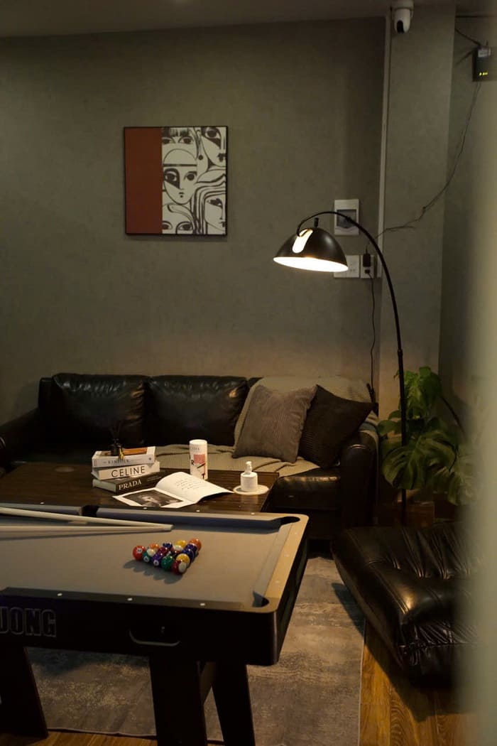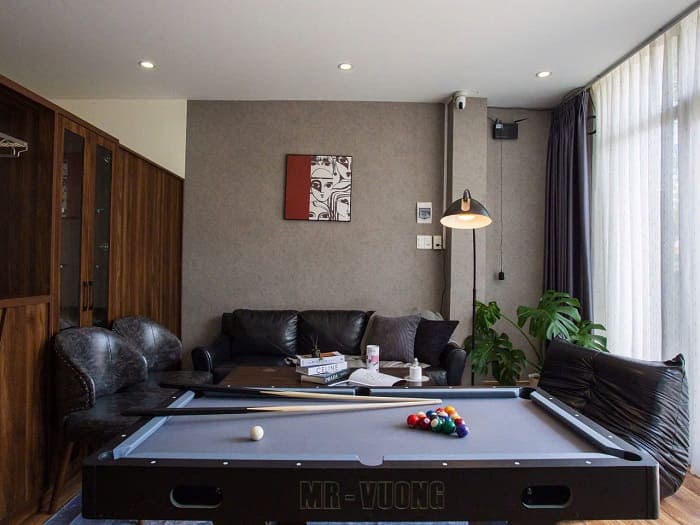 – Phòng khách rộng rãi ,phong cách tone xám đen