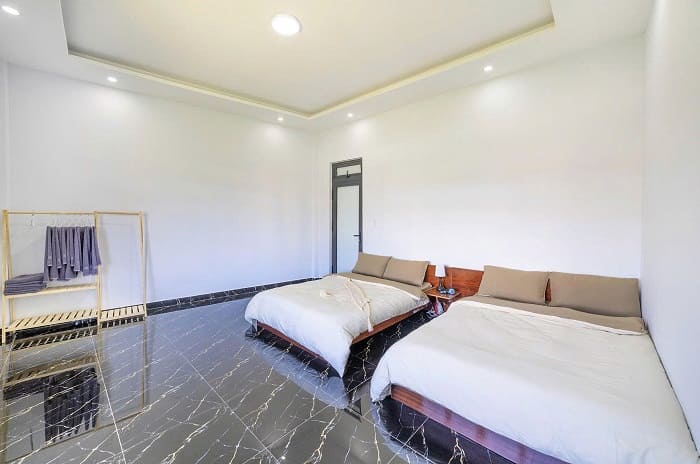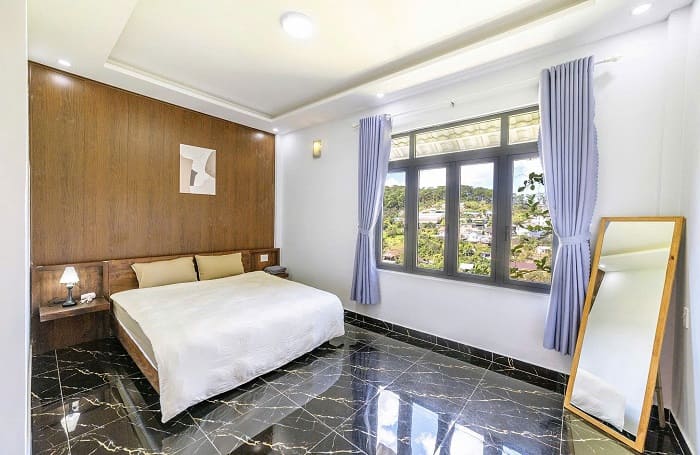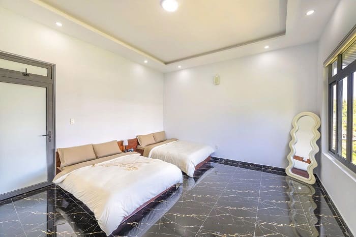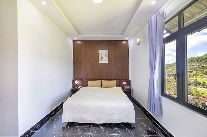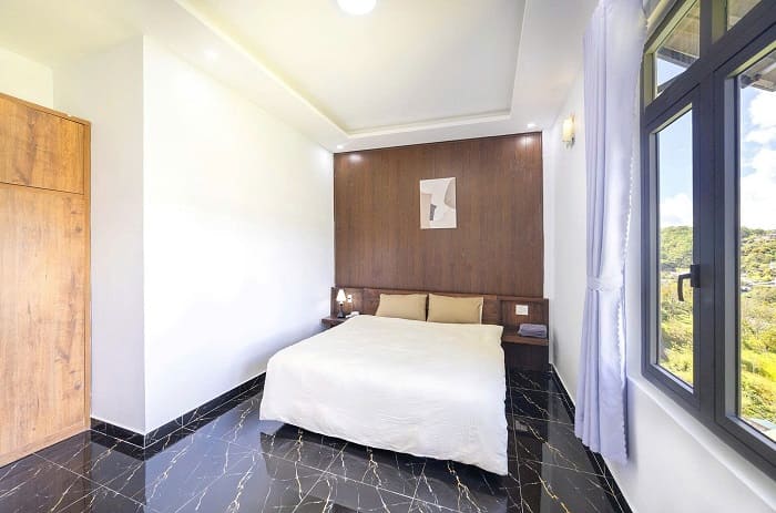 – 2 Phòng ngủ rộng 30m², mỗi phòng đều có view rừng thông & thung lũng.Trang bị 3 giường lớn + 1 nệm thêm 1m6